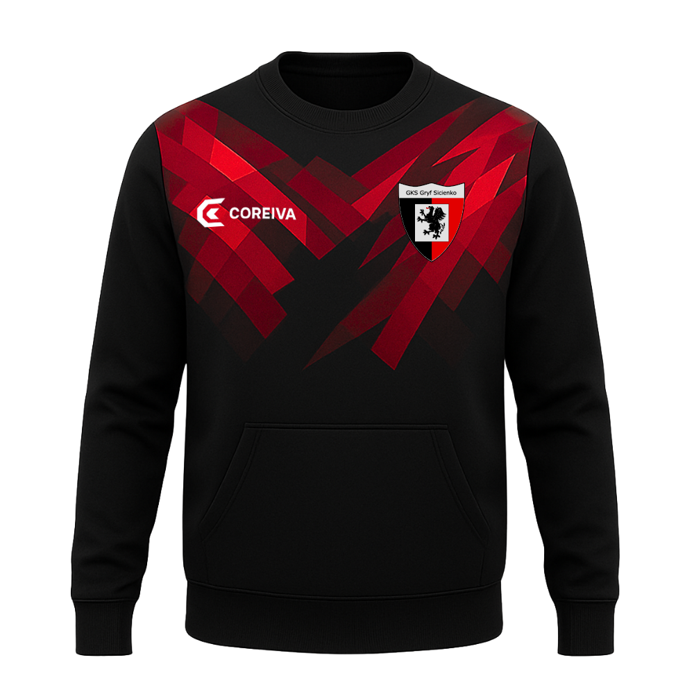 Nadruk obejmuje całą powierzchnię bluzy lub wybrane elementy (np. logo na piersi, rękawie lub plecach) — wszystko zależy od projektu.