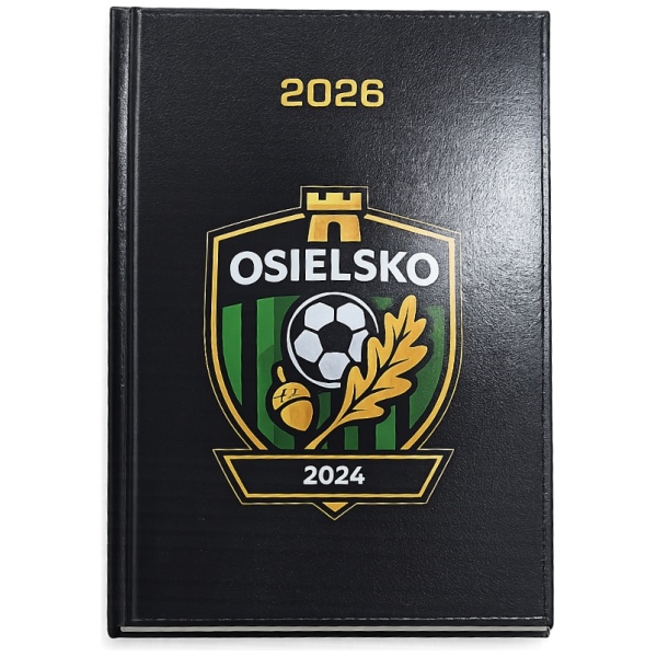 Twarda, czarna okładka o eleganckiej fakturze została ozdobiona złotym tłoczeniem „2026” ✨ oraz efektownym herbem Osielsko 🛡️, nadając całości prestiżowy charakter.