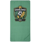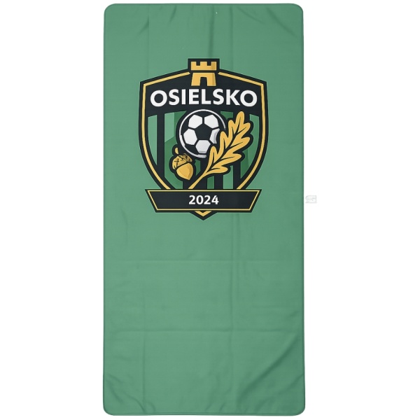 Jednostronny nadruk z logo PAP Osielsko oraz nowoczesnym wzorem w barwach klubowych sprawia, że ręcznik prezentuje się wyjątkowo stylowo