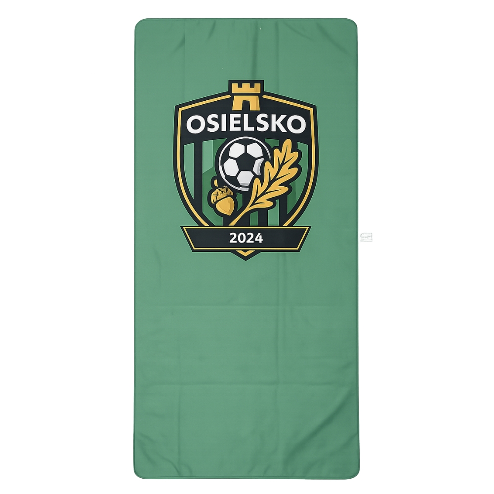 Jednostronny nadruk z logo PAP Osielsko oraz nowoczesnym wzorem w barwach klubowych sprawia, że ręcznik prezentuje się wyjątkowo stylowo